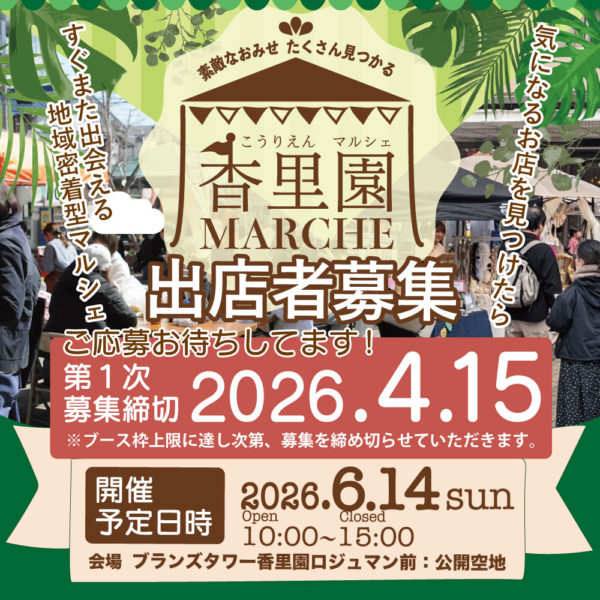 香里園マルシェ2026:SUMMER出店募集開始! 投稿日: 2026年3月26日2026年3月26日 投稿者: korienbunkasai 香里園マルシェ2026:SUMMER ブランズタワー香里園ロジュマン前:公開空地にて 2026年6月14日(日)に【香里園マルシェ2026:SUMMER】を開催します。 現在、出展者を募集中です。 香里園界隈のお店はもち… 全文を読む
