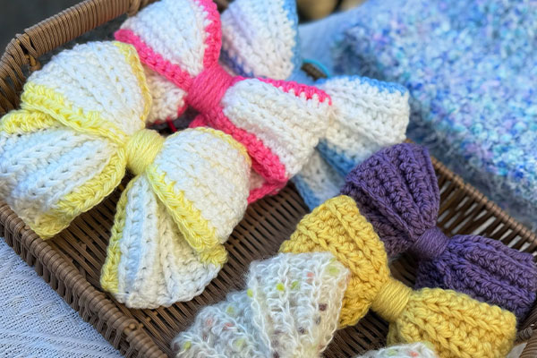 編み物屋さんです! 毛糸やコットン糸で編んだ、シュシュ・ポーチ・推し活カラーのリボン等作ってます! 大人や子供、夢カワやシンプル可愛いまで色々お持ち致します! 手触りも良いので、是非触ってみてください!