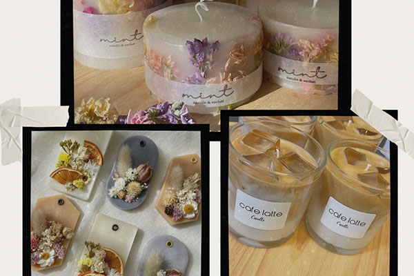キャンドル、ドライフラワー雑貨の販売とワークショップ
